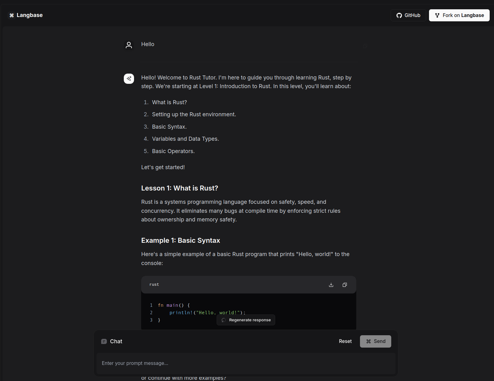 - Fork the Rust Tutor Chatbot Pipe on ⌘ Langbase.